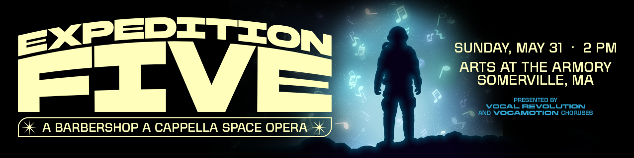 2:00 PM. Vocal Revolution and VocaMotion Choruses [MA]: Expedition Five: A Barbershop A Capella Space Opera. In a distant future, when Earth is nothing more than a hazy memory, humanity wanders the endless universe in search of a new home. There’s only one person left who can find it. Expedition Five will transform Somerville’s Arts At The Armory into a thrilling and heartfelt journey through space. Vocal Revolution is the highest-ranked men’s chorus ever in the Northeastern District of the Barbershop Harmony Society, with 20 District Championship titles. VocaMotion is the only treble voices chorus in the District. For more information, email marketing@vocalrevolution.org. Arts at the Armory, 191 Highland Avenue #1c, Somerville MA 02143 (View flier) 🔗