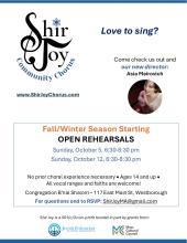 For questions and to RSVP: ShirJoyMA@gmail.com