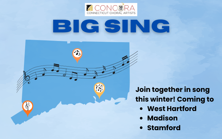 2:00 PM. CONCORA [CT]: BIG SING. The BIG SING connects vocalists together in multiple locations across the state to sing choruses from the same well-loved work. For January-February 2026, the choruses will all be from Mendelssohn's Elijah. An optional and encouraged vocal workshop, designed for avocational singers, will begin each event. Listed event time is for the workshop; the group sing begins one hour later. For more information, call 860-293-0567 or email contact@concora.org. Westminster Presbyterian Church, 2080 Boulevard, West Hartford CT 06107 (View flier) ⓘ 🔗