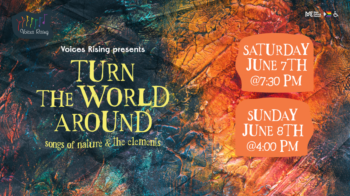 4:00 PM. Voices Rising [MA]: Turn the World Around: songs of nature and the elements. Music from the folk tradition, popular tunes from Broadway and Harry Belafonte, and songs from women composers including Joan Szymko, Andrea Ramsey and Sarah Quartel to connect with the energy of our natural environment. For more information, call 617-396-7086 or email info@voicesrising.org. Eliot Church Of Newton, 474 Centre Street, Newton MA 02458 (View flier) ⓘ 🔗